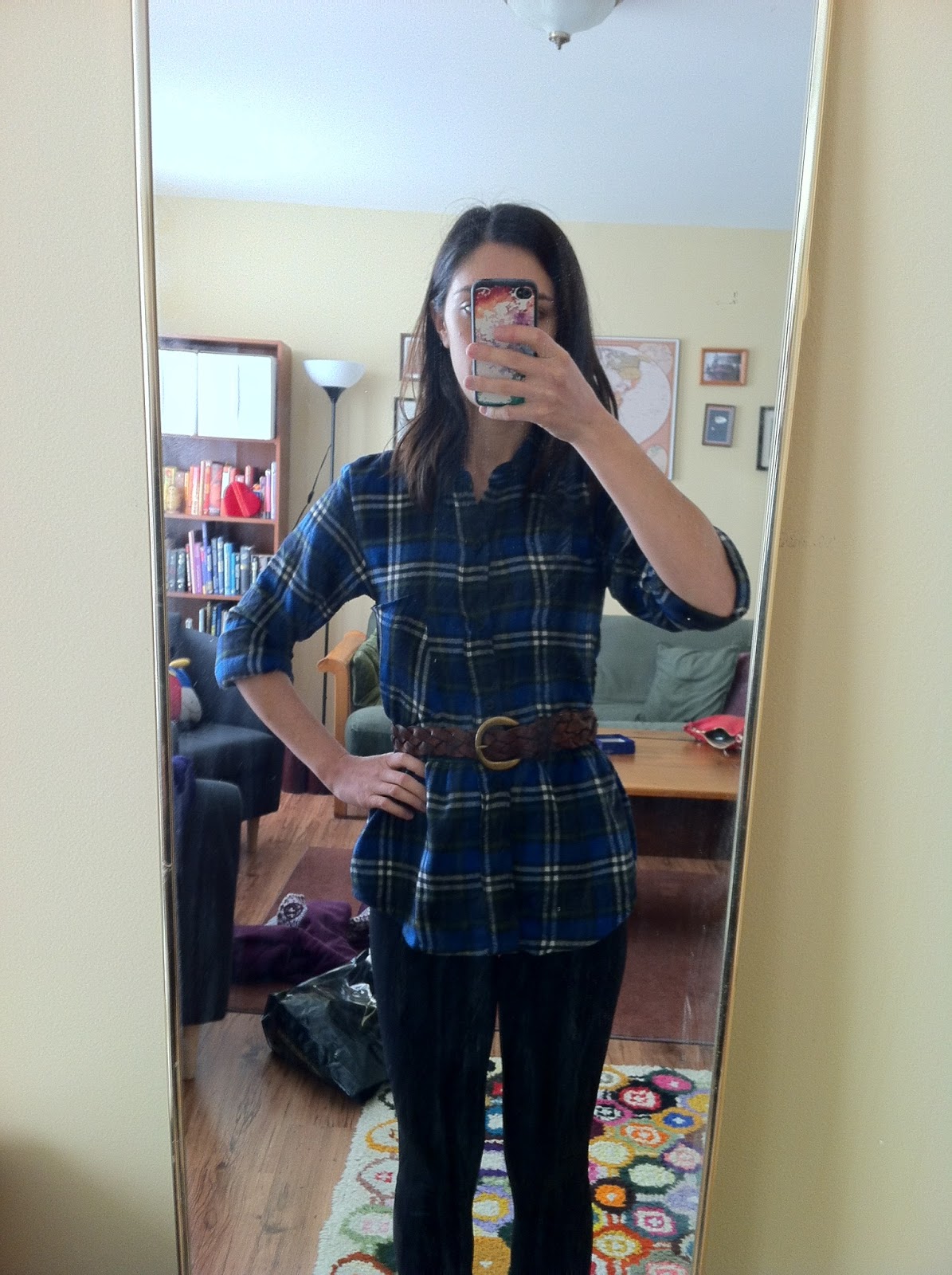 So here's the belt, and the rolled up sleeves. What a difference! Too bad it's pretty much summer weather now. I'll be saving this shirt for cold nights I guess!